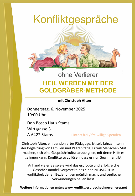 Bei Mühlviertel.TV kann der Vortrag "Versöhnen wirkt heilsam - Konfliktgespräche ohne Verlierer" auf Schloss Riedegg (April 2025) angehört werden: